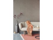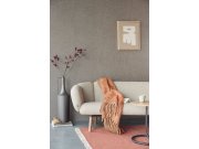 Šedá vliesová tapeta na zeď se stříbrným leskem a geometrickým vzorem v hnědé barvě.