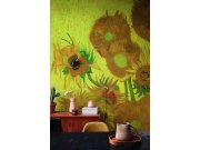 Vliesová obrazová tapeta. Výřez Slunečnic Vincenta Van Gogha. Zřetelné tahy štětce, plastický efekt. 6 panelů