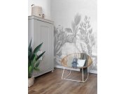 Šedo-bílá vliesová tapeta na zeď, motivy zvířátek a květin.