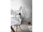 Vliesová obrazová tapeta na zeď, šedá kresba džungle, slonů, palem.