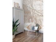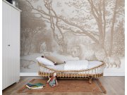 Vliesová obrazová tapeta na zeď, hnědá kresba lesa, lesních zvířátek - medvědi, liška, jezevec, jelen.