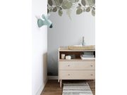 Stromy v šedé a zelené barvě, v pozadí srnky. Lze dozdobit samolepícími dekoracemi. Tapeta má navazující vzor, pokud potřebujete pokrýt širší stěnu, stačí přikoupit další kus (sadu 4 pruhů). Jednotlivé pruhy samostatně objednat nelze.