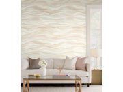 Vliesová obrazová tapeta, vlnky v krémovo-béžových odstínech s metalickými zlatými liniemi. . Tapeta má navazující vzor, pokud potřebujete pokrýt širší stěnu, stačí přikoupit další kus.