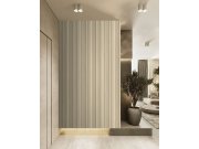 Vliesová tapeta na zeď, imitace dřevěného stěnového obložení / lamel, odstíny béžové, šedo-béžové. ze 4 dílů 0,53 x 280cm . Tapeta má navazující vzor, pokud potřebujete pokrýt širší stěnu, stačí přikoupit další kus (sadu 4 pruhů). Jednotlivé pruhy samosta