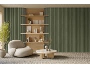 Zelená vliesová tapeta na zeď, efektní dekor s 3 D efektem - dřevo, dřevěné obklady. Tapeta je vhodná do obývacího pokoje, ložnice, chodby, nebo pracovny.