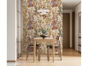 Vliesová tapeta na zeď, květinové motivy, odstíny vínové, hnědé, šedé, modré, zelené, béžový podklad. ze 2 dílů 0,53 x 280cm. Tapeta má navazující vzor, pokud potřebujete pokrýt širší stěnu, stačí přikoupit další kus (sadu 2 pruhů). Jednotlivé pruhy samos