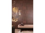 Vliesová obrazová tapeta na zeď, jemně plastická textura, pozadí v odstínech hnědé, žluté a béžové, modro bílé květy. Pro větší šířku lze kombinovat s tapetou DGTRA5021-300 a DGTRA5022-300 - viz foto. Co vás zaujme: odolnost, snadná údržba a čištění. Desi