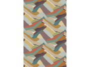 Grafická vliesová tapeta na zeď, odstíny hnědo-červené, modré, okrové, zelené a šedo-béžové, architektonický design. z 5 dílů 0,53 x 280cm. Tapeta má navazující vzor, pokud potřebujete pokrýt širší stěnu, stačí přikoupit další kus (sadu 5 pruhů). Jednotli