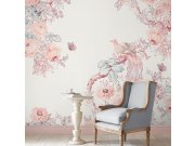 Obrazová vliesová tapeta s barevnými květy a exotickými ptáky na světlém hladkém podkladu vnese do interiéru příjemnou atmosféru.