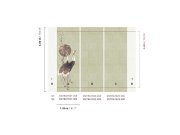 Vliesová obrazová tapeta na zeď, jemná textilní textura, pozadí v odstínech zelené, šedé a bílé, zlato hnědé kvetoucí sakury a letící bílo šedí jeřábi s červenou chocholkou. Pro větší šířku lze kombinovat s tapetou DGTRA4031-300 a DGTRA4032-300 viz foto.