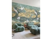 Tapety Yara » Masureel » Vliesová obrazová tapeta na zeď, zelená, bílá, letící jeřábi, DGTRA4033-260, Traces, Masureel
