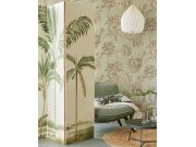 Vliesová obrazová tapeta, motiv svěží laguny, palmy, ptáci, krémový podklad.