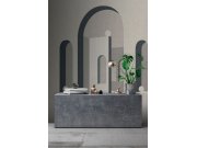 Luxusní vliesová tapeta na zeď v šedých odstínech se vzorem obkladů se 3D efektem. Luxusní 3d tapety do obýváku.