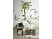 Tropical Wood - design volavek a palem na palubkovém podkladu. Tapeta má navazující vzor, pro větší šířku stačí přikoupit další kus.