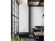 Šedá vliesová tapeta na zeď cihly, imitace oprýskané cihlové zdi.
