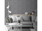 Šedá, jemně plastická vliesová tapeta s geometrickým vzorem. Foto interiéru je pouze ilustrační - odlišné barvy