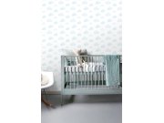 Bílá vliesová tapeta s drobnými šedo-modrými hvězdičkami. Tapeta vhodná do dětského pokojíčku.