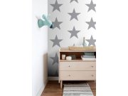 Bílá vliesová tapeta s šedými hvězdami.