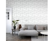 Šedo-krémová vliesová tapeta na zeď, geometrický vzor - čtverce.