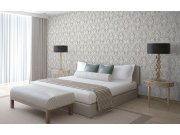 Vliesová tapeta na zeď. Vzor v odstínech pololesklé metalické krémové, podklad pololesklý stříbrný.