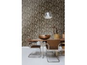 Šedohnědá vliesová tapeta na zeď, imitace čtvercového dřevěného obložení.