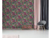 Luxusní květinová vliesová tapeta s vinylovým povrchem v pestrých barvách s metalickými odlesky. Motiv tropických květin a motýlů. Hrubá struktura.