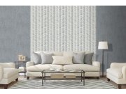 Luxusní vliesová tapeta s vinylovým povrchem, efektní geometrický retro vzor v odstínech bílé, šedé a stříbrné. Foto interiéru je pouze ilustrační - odlišné barvy.