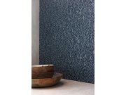Vliesová tapeta s imitací štukové omítky. Pololesklá tmavě modrá melanž s drobnými stříbrnými třpytkami.