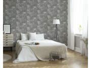 Vliesová, tmavě šedá tapeta s šedými a bílými listy.