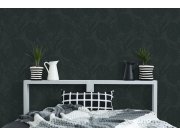 Luxusní květinová tapeta - podklad vlies, povrch plastický vinyl. Velký květinový vzor, podklad plastický vzorek. Barvy na tapetě - podklad černá s drobnými zlatými třpytkami, vzor odstíny metalické modré, zelené, béžové, šedé.