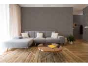Vliesová, tmavě šedá tapeta. Imitace jemné textilie s odlesky z růžového zlata.