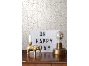 Vliesová bílá tapeta se zlatým vzorem ženských obličejů.