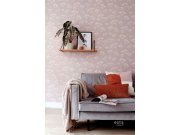 Vliesová, starorůžová tapeta na zeď s bílým rostlinným motivem.