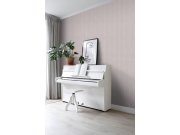 Vliesová, starorůžová tapeta s bílým geometrickým vzorem.