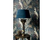 Vliesová tapeta imitace jemné látky. Tropické rostliny, papoušci a kolibříci.