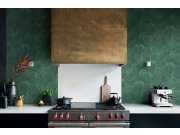 Vliesová tapeta s palmovými listy. Imitace hrubší látky, odstíny zeleno-černé.
