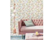 Krémová vliesová tapeta s květinovým vzorem.