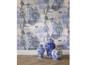 Vliesová tapeta na zeď, motivy historických nádob v odstínech šedé a modré, místy jemný modrý pololesk. Co vás zaujme: příjemná textura. Design: netradiční, zámecký. Úroveň tapetování: pro začátečníky. Země původu: Holandsko.