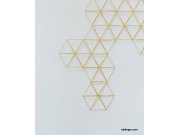 Vliesová tapeta. Žíhaný podklad, výrazný geometrický vzor, odstíny béžové, hnědé, zlato-hnědé, střídání matu, lesku, pololesku.