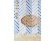 Současné trendy nadčasovým pruhům a proužkům přejí. Jsou kombinovatelné se vzorovými i jednobarevnými tapetami, nebo samostatně dokáží vymezit a zútulnit prostor. Pruhy se šikmými proužky v modrých odstínech na vliesové tapetě na zeď.