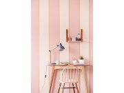 Růžová pruhovaná vliesová tapeta na zeď s úzkým metalickým proužkem.