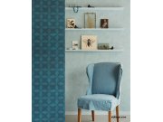Světle modrý geometrický vzor na tmavě modré vliesové tapetě. Vliesové tapety Siroc cítí tlukoucí africké srdce, které se rozeznívá v této rozmanité kolekci luxusních tapet. Rytmus kontinentu je zachycen ve vibrujících vzorech těchto tapet se spoustou tep
