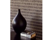 Vzorovaná vliesová tapeta s pruhy v béžové, černé a hnědé barvě.