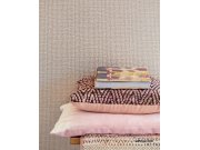 Béžový geometrický vzorek na starorůžové vliesové tapetě. Vliesové tapety Siroc cítí tlukoucí africké srdce, které se rozeznívá v této rozmanité kolekci luxusních tapet. Rytmus kontinentu je zachycen ve vibrujících vzorech těchto tapet se spoustou teplých