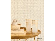 Velmi decentní a elegantní zlatý ornamentální vzorek na světle béžovém podkladu. Metalické efekty vnesou do interiéru nádech luxusu.