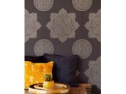 Motivy mandal vnesou do vašeho interiéru harmonii a uvolnění. Stříbrné obrysy mandal na hladkém černém podkladu připomínající textilní strukturu.