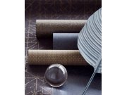 Vliesová, žíhaná tapeta v odstínech šedo-hnědé, nepravidelné metalické zlaté tečky.