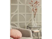 Vliesová tapeta s výrazným geometrickým vzorem. Podklad pololesklý jemně metalický v šedo-béžovém odstínu, vzor matný šedý.