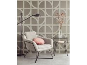 Vliesová tapeta. Velký geometrický vzor v hnědo-béžových odstínech, tmavší části s jemným pololeskem.