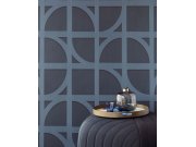 Vliesová tapeta s výrazným geometrickým vzorem v modrých odstínech.